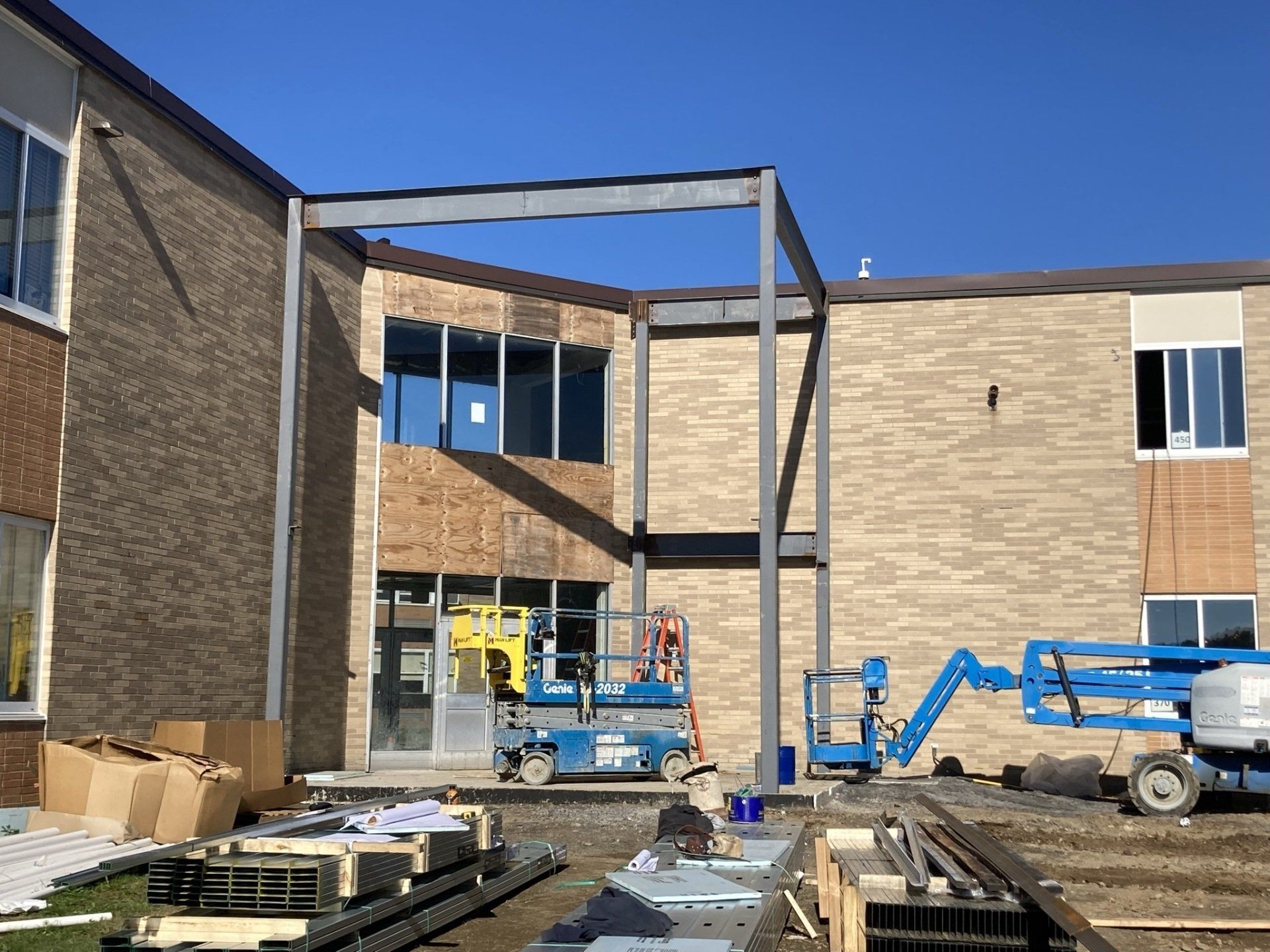 Steel erection as part of school remodel project.